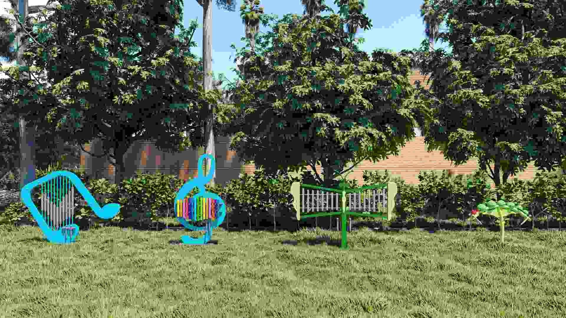 Dit is een percussie-instrument voor buiten dat de vorm van muzieknoten perfect combineert met het ritme van een harp – de "Blues Harp", zorgvuldig vervaardigd door Wenzhou Hank Amusement. Met helderblauwe muzieknoten als raamwerk is hij uitgerust met 14 groepen afgestemde metalen klankstaven, gecombineerd met duurzame buitenmaterialen en een gehumaniseerd ontwerp. Het is niet alleen een artistieke installatie in de openbare ruimte, maar ook een interactief muziekinstrument waarmee mensen van alle leeftijden hun muzikale instincten de vrije loop kunnen laten. Geschikt voor parken, campussen, gemeenschappen en andere scenario's, waardoor natuur en ritme elkaar buitenshuis kunnen ontmoeten.